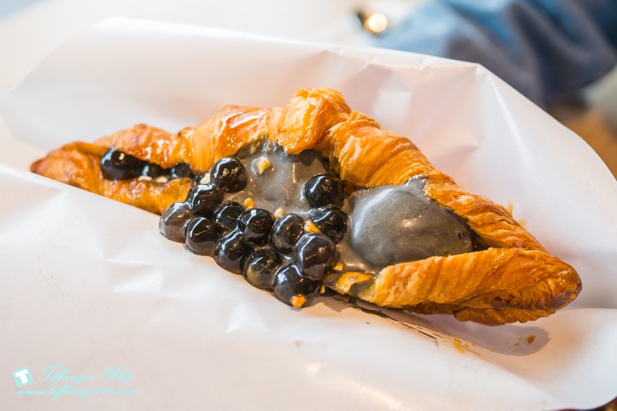 煤礦可頌冰是黑芝麻雪酪搭配珍珠的特別結合,很難想像這三種東西可以搭配在一起,不過口感卻是滿意外的很合。