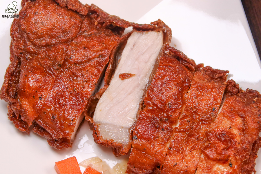 切薄片好入口,帶有焦香氣味的、咬下帶有甜味香氣的豬排
