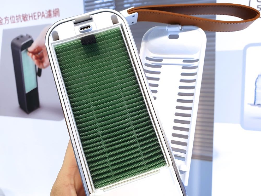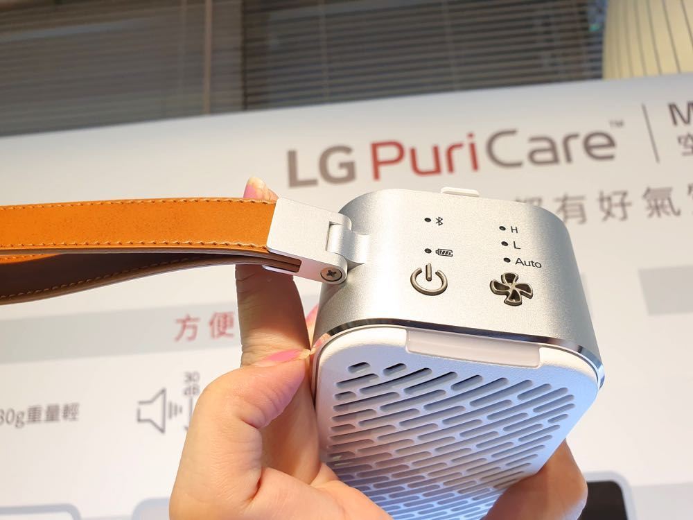 LG PuriCare Mini 隨身淨空氣清淨機體積相當輕巧,機身上方的操作介面更是簡潔易懂,電力方面能夠續航 8 小時,還有針對開車族推出的車用杯架、小孩族的嬰兒推車支架等配件讓用戶依照環境來搭配。一側更是有皮質風格手環提把,能夠隨時掛著、拎著攜帶使用。