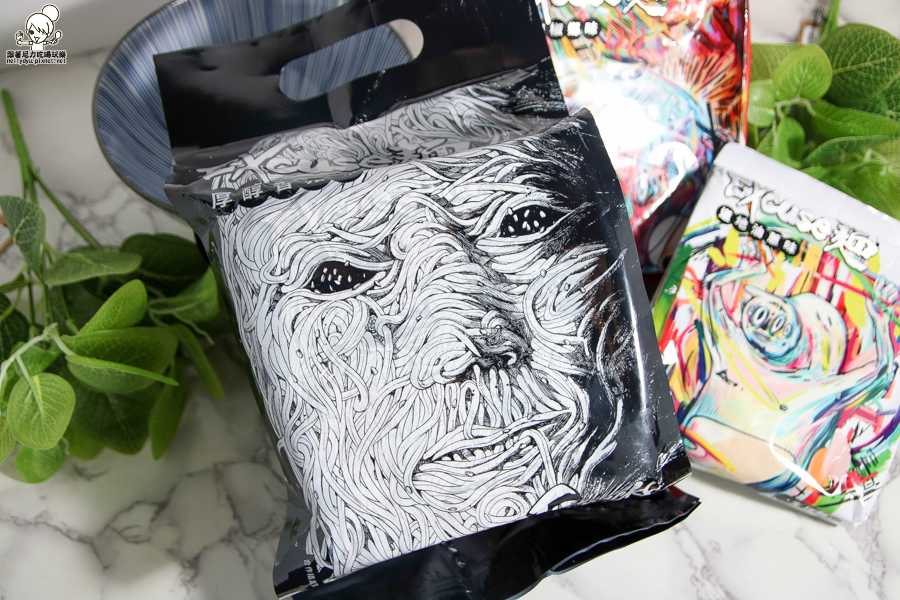 每款口味包裝的圖樣都不同,別於一般傳統的泡麵、麵食包裝