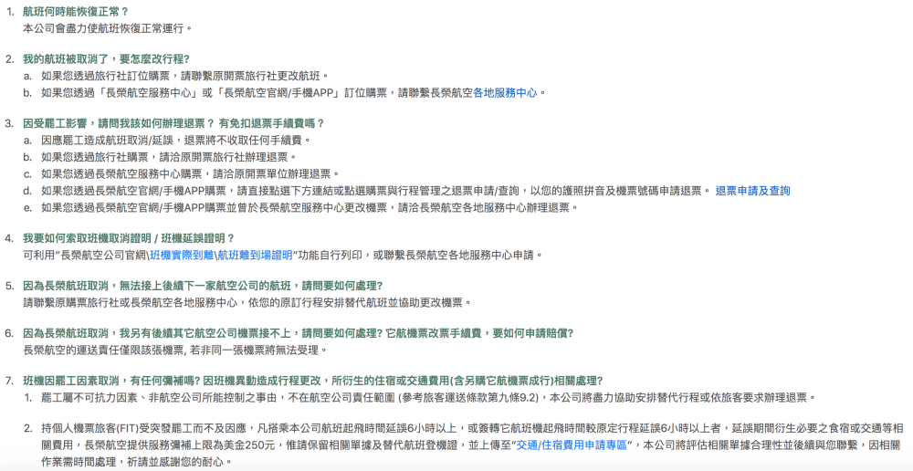 長榮航空在該網頁也整理旅客常見問題,基本上這網頁已足以解答大部分旅客的疑惑。