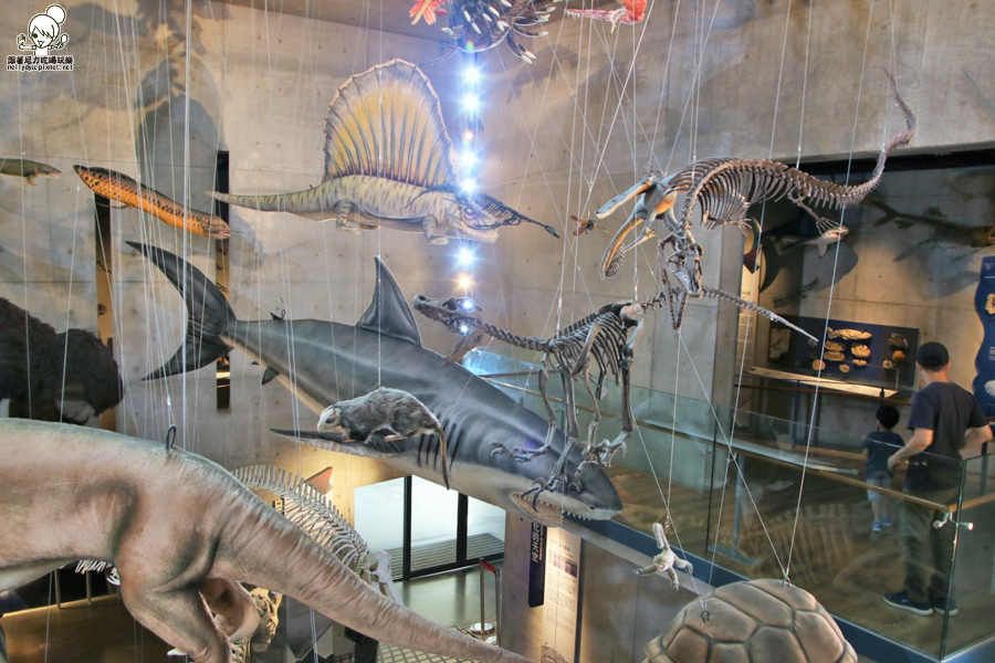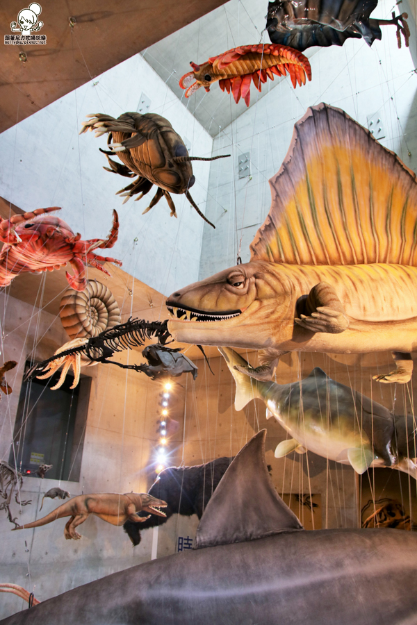 很狀況大比例的生物、恐龍化石等等裝置,挑高樓層的設計超棒、視覺超震撼