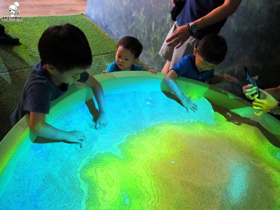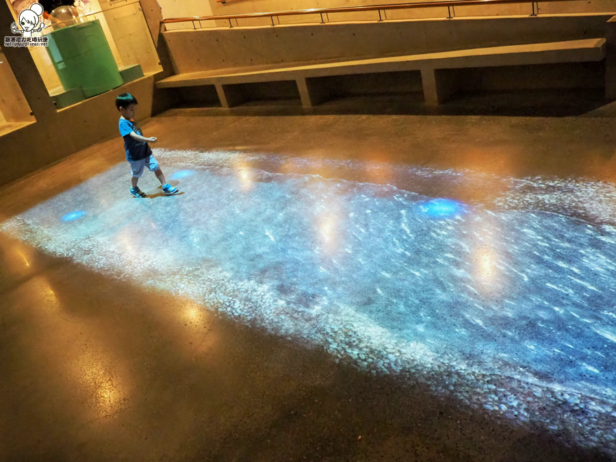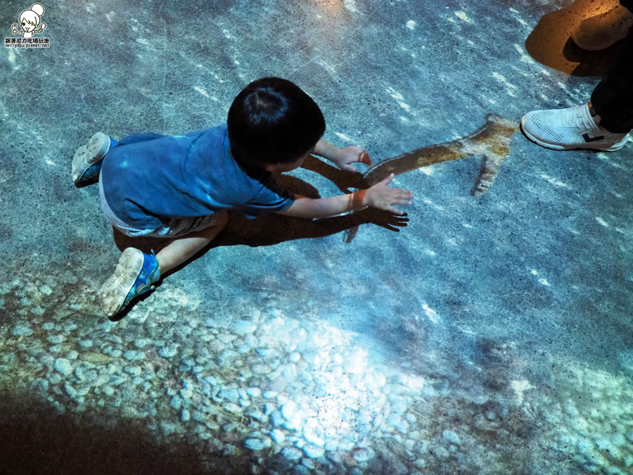 互動虛擬菜寮溪,可以踩踏感應,一起探險與挖掘化石