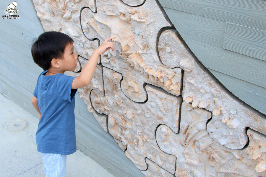 左鎮化石園區的外觀裝置很有意思,讓小朋友發現牆壁上也有奧妙