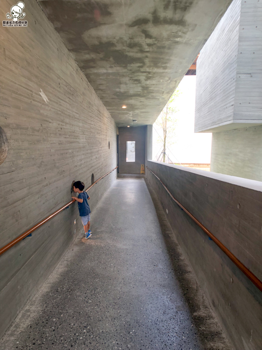 也有友善的電梯、斜坡、親子友善設施,清水模的質感更結合了化石展示質感