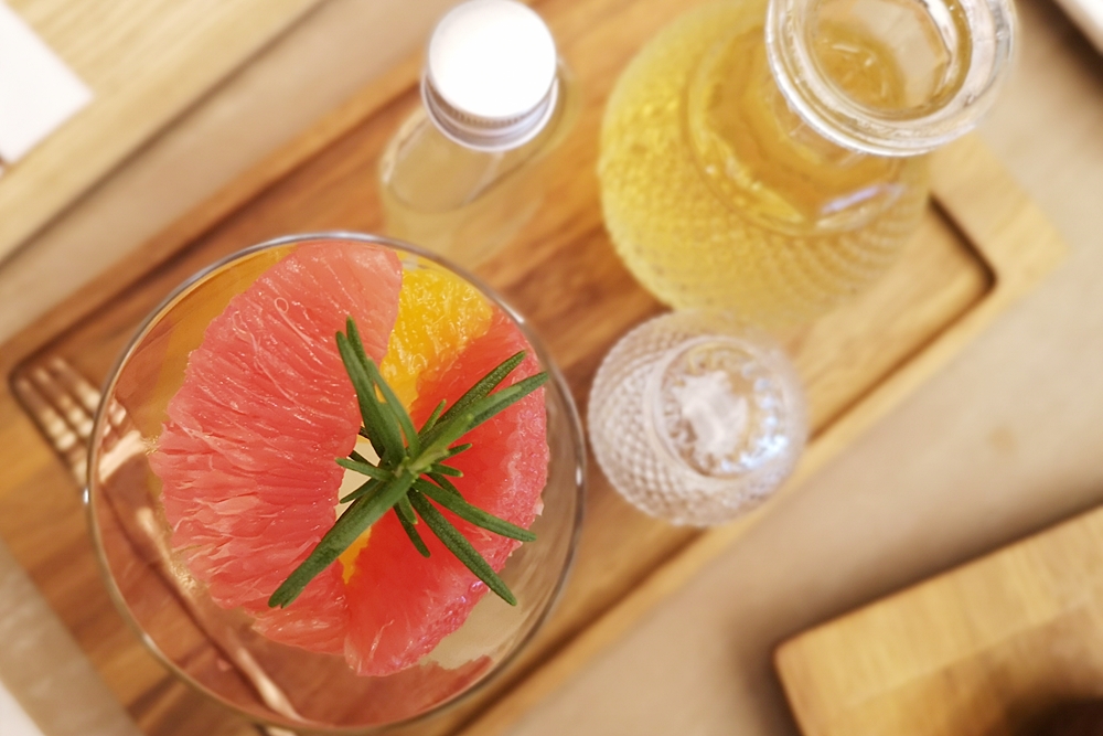 清甜的蜜桃冰磚最上頭放入新鮮果肉,再倒入薑橙飲,淡淡果香舒服入喉,補充滿滿維他命C。