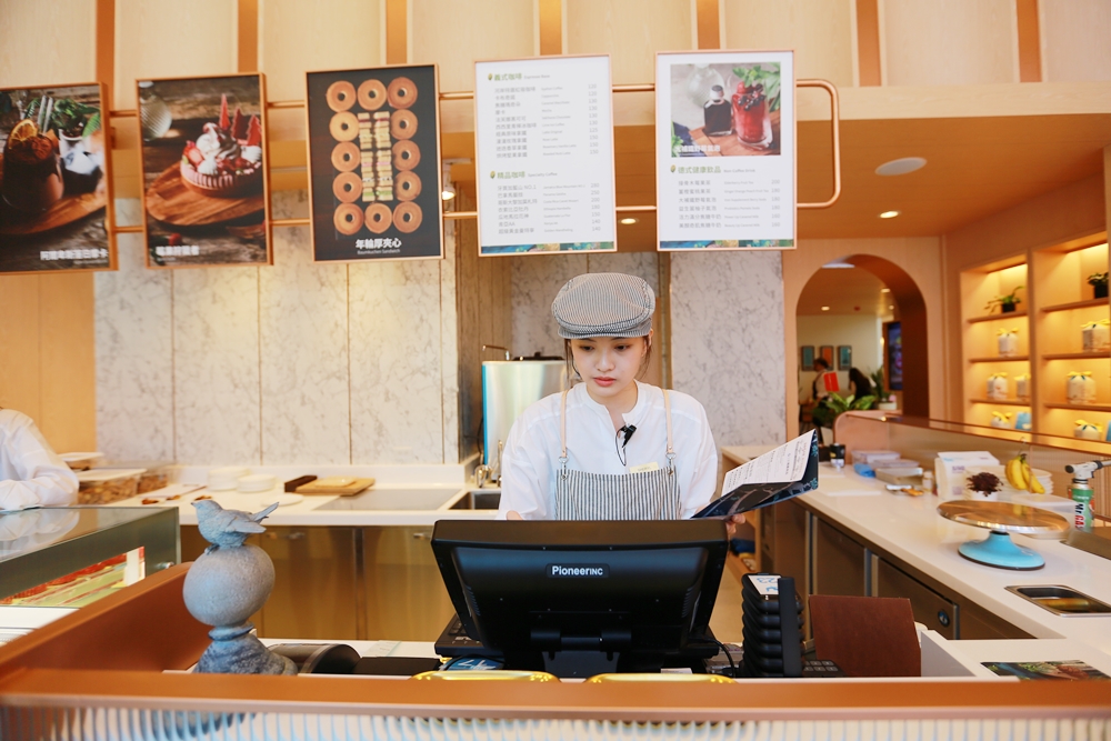 kafeD是採自助式點餐,不收10%服務費,門口櫃台人員會親切招呼並遞上菜單,引導客人往右側拱門走去找座位,畫好點餐單後再到入口處的櫃台結帳就行囉。以台中自助式咖啡廳來說,這裡的質感讓人印象深刻。