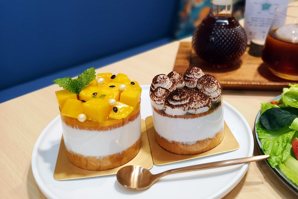 造型小巧可愛的蛋糕跟一般常見的慕斯蛋糕、塔類蛋糕不同,上下兩層是年輪蛋糕,中間白色是清爽奶油,最上面用時節水果、巧克力粉點綴,一個人吃一顆剛剛好。