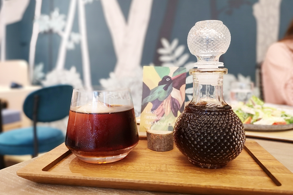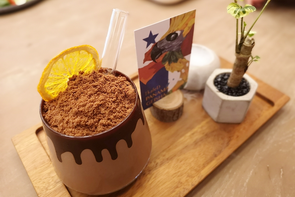 精品咖啡售價140-280元不等,共有七種豆子選擇。把精品咖啡用香水瓶裝著,杯中放入大顆圓冰球像是品嚐烈酒般的形式,喝咖啡也變得有趣好拍了。喜歡喝精品咖啡的朋友不仿試試,咖啡的酸甘甜均衡展現,表現得很不錯呢!