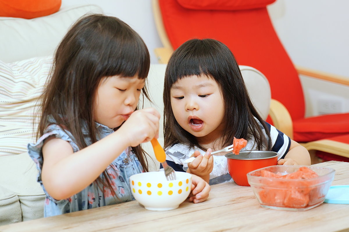 ▼下午就是小倆口的點心時間啦!當天的點心是小口愛去賣場自己挑選的西瓜,夏日炎炎正是吃西瓜的好時節啊~尤其是在冷氣房裡頭吃西瓜更是超級過癮!只見小倆口吃得很開心,而且總覺得對方的西瓜比較好吃(笑)~明明是同一顆啊傻孩紫!