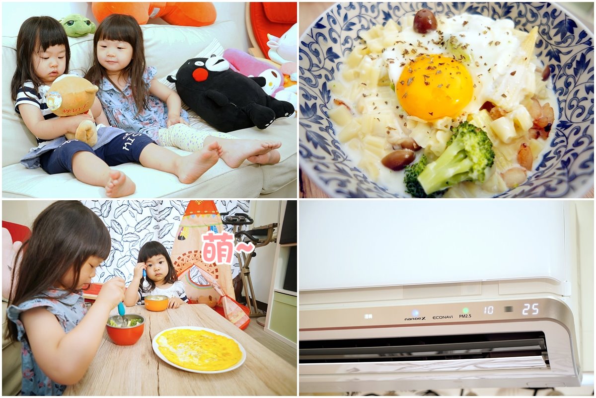 ▼開飯囉!我們就在涼爽又舒服的小客廳裡頭用餐,當天我們吃的是Kitty圖案的奶醬義大利麵,小倆口都很喜歡,還能一邊用餐一邊玩耍聊天,就算開著空調也不會覺得吵雜。因為這台空調不僅有大風量,而且沒有傳統冷氣那種格柵會阻擋氣流吸入,所以進風更加均衡,自然出風更平順,也就更加安靜有效率!重點是整體空間相當涼爽又不會忽冷忽熱,非常均衡的溫度,就算小朋友在也不用擔心容易感冒!