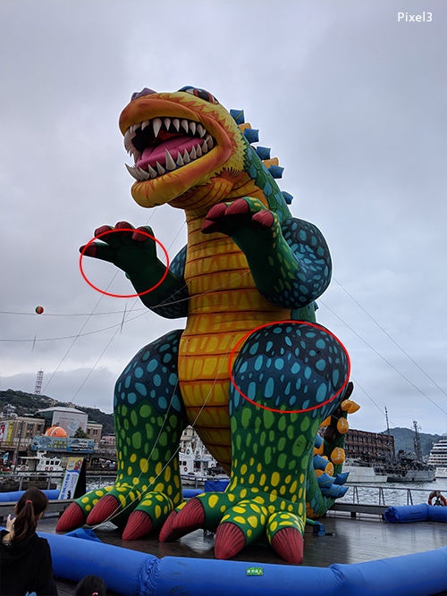 Pixel3 在逆光的情況下,恐龍的對比不但變大,甚至暗面與細即表現,顯得有些不足。