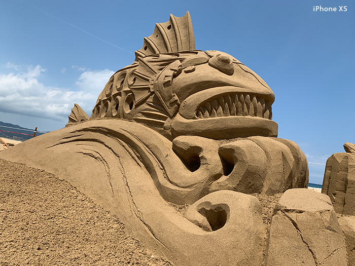 iPhone XS 逆光的表現處理相當的好,除了保留天空的層次外,就連恐龍身體也細節也相當的豐富。