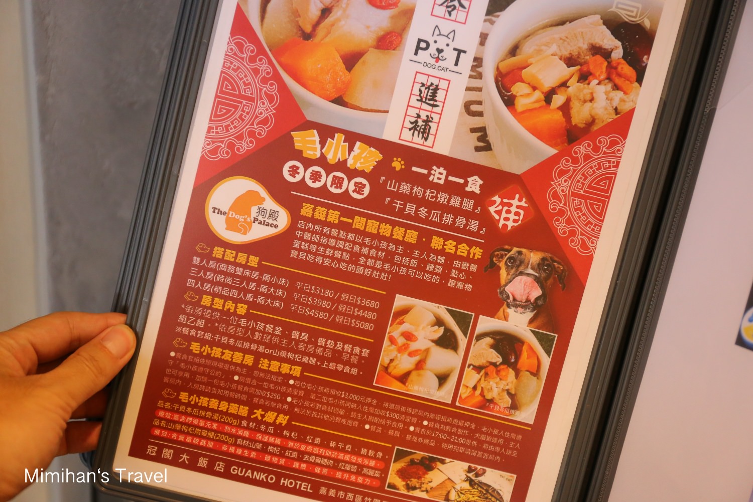 值得一提的是冠閣大飯店除了親子友善之外,更特別的是有提供寵物同住的房型馬上查寵物空房),甚至還與嘉義有名的毛小孩餐廳合作寵物餐點,完全可以帶著家裡的毛小孩一起來嘉義玩,連適合毛小孩的嘉義景點清單都幫主人準備好了 😆