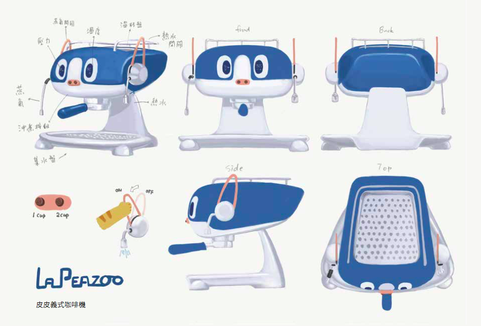 在《德》劇中皮皮可變為多種型態,此為義式咖啡機的手稿