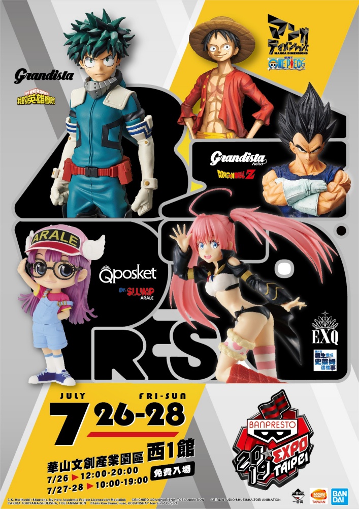 去年同期首次舉辦大型模型展覽的『BANPRESTO』品牌,於今年4月與BANDAI SPIRITS 公司合併後,即將於7/26(五)-7/28(日)於台北華山1914文創產業園區(西1館)首度隆重舉辦「BANPRESTO EXPO 2019」活動。展出內容將規劃「我的英雄學院」、「航海王」、「七龍珠」人氣角色主題專區以及旗下系列商品的展覽專區,更有『與日本同步開賣』的超人氣的一番賞人氣商品。本次展覽佔地為去年的兩倍大,全場免費入場,暑期第一檔模型展即將正式引爆!
