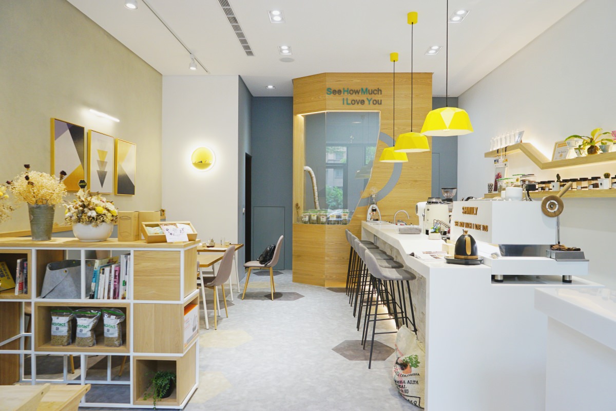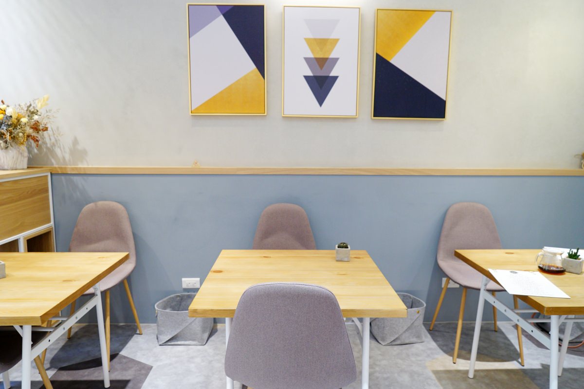 明亮簡約打造的時尚咖啡空間,使用清新白色調、質感灰藍、木質桌椅,帶來更多親切感卻又不失格調,整體風格很有質感。兩張沙發位、三張雙人桌位,再加上一些吧台位,座位數不多,大約容納 10-12 人。