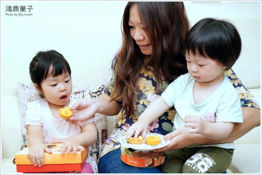 ▼牙齒還沒長齊的小口弟只咬了一口塔皮就露出開心的笑容,可見他很愛,可惜堅果還咬不動~後來改給他們吃曲奇餅更是瞬間秒殺,果然很適合一家大小一起享用!