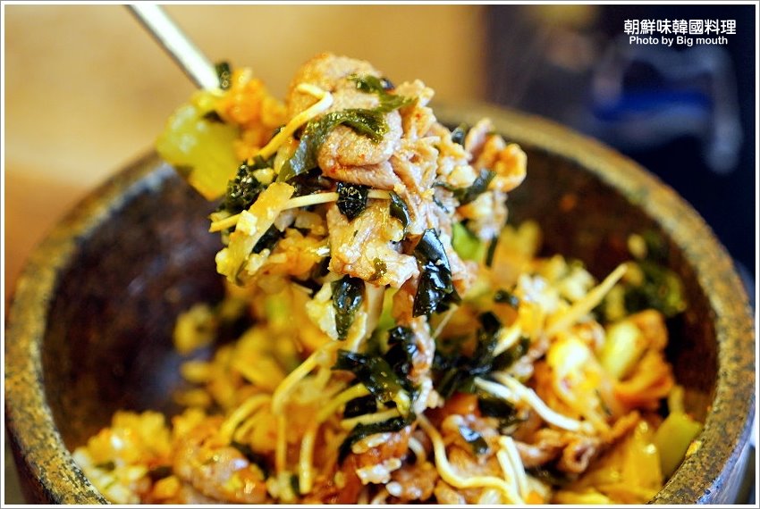 ▼韓式起司豬肉石鍋拌飯,喜愛吃石鍋拌飯又熱愛起司的朋友可以考慮點這道,就可以一次滿足兩種需求啦XD吃石鍋拌飯的好處就是一口能夠吃進帶有點鍋巴的米飯、泡菜、豬肉片與配料,吃起來微微香辣帶點鹹甜滋味,再搭配香濃的起司更是大加分!