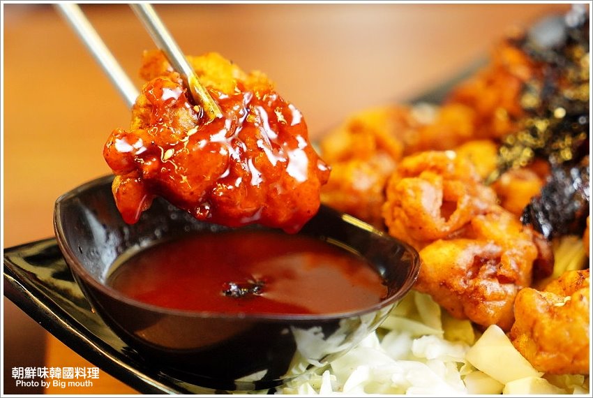 ▼韓式炸雞,堆得跟小山一樣高的韓式炸雞也是人氣餐點,一旁附有特調的韓式辣醬,不管是單吃或是沾附享用都不錯!