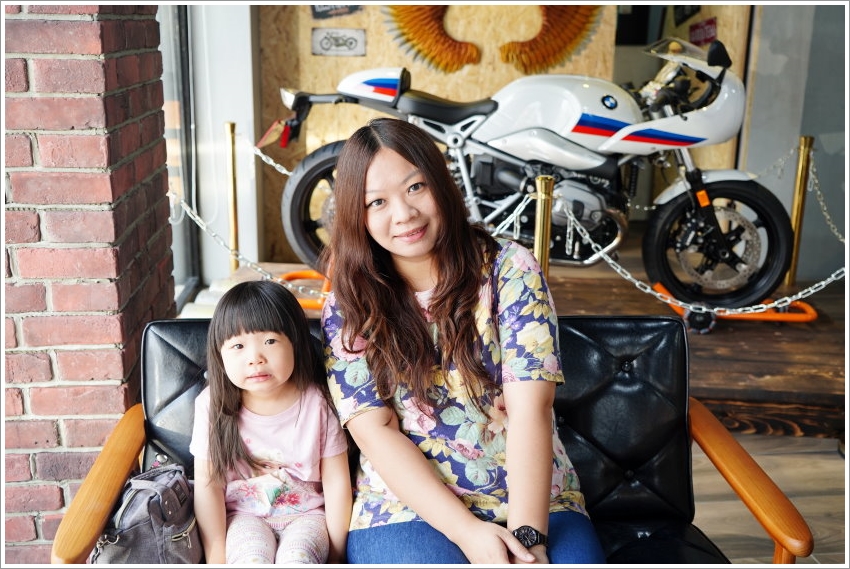 ▼坐在休憩區還可以跟重機來張合照,真是太剛好啦~哈!