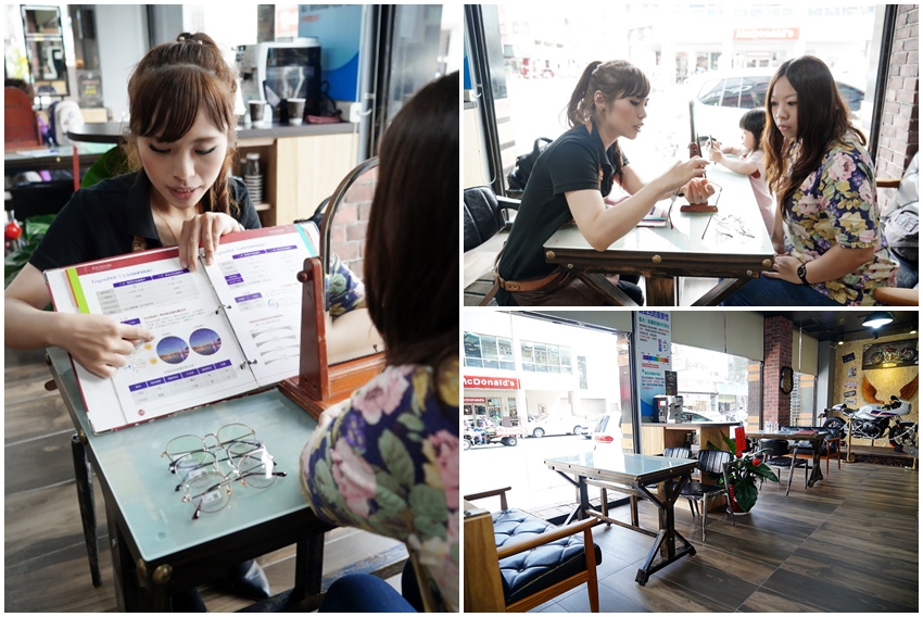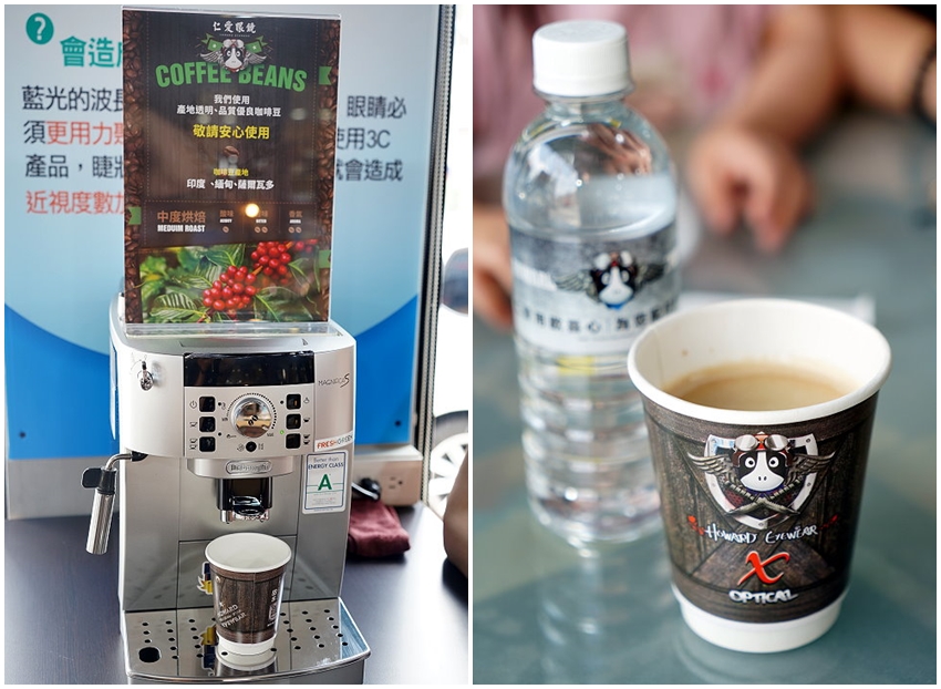 ▼選好鏡框、驗光完畢後,服務人員就會引領客人到一旁的座位喝杯咖啡,一邊喝咖啡一邊進行配鏡!