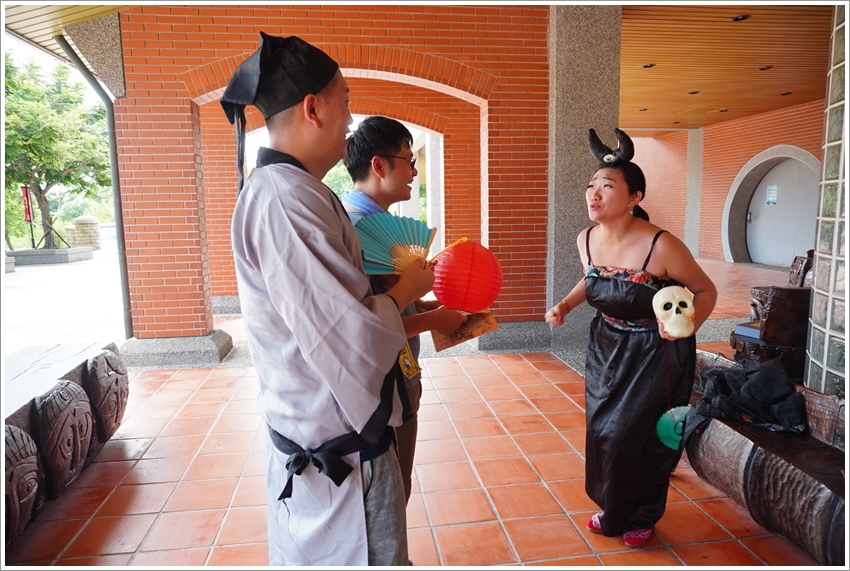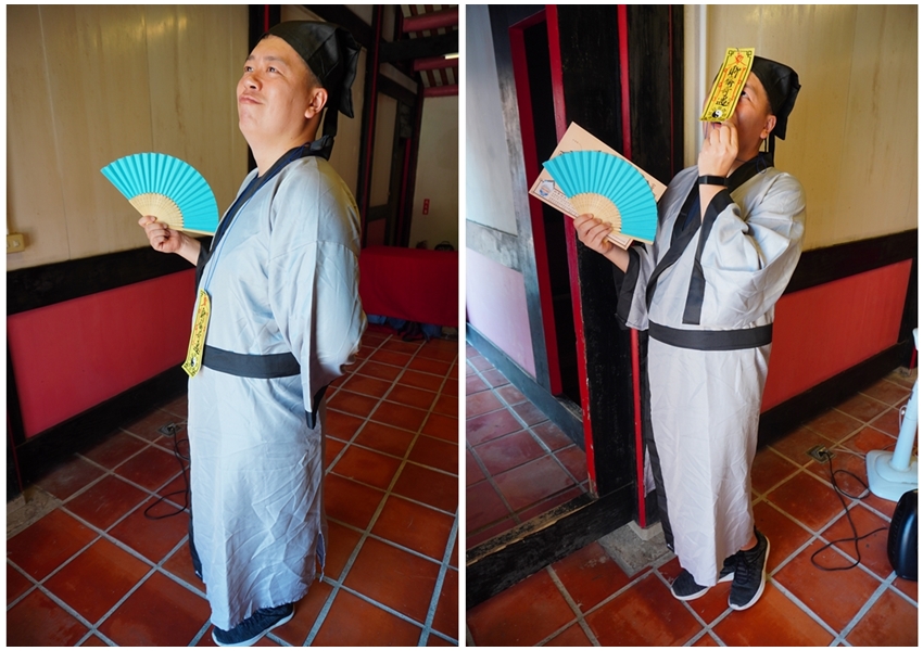 ▼這裡提供的是書生裝,還會提供給你一把扇子及符咒掛在身上,感覺好有聊齋的感覺啊(笑)!這裡的服裝道具租借都是免費的,只要壓證件即可,等到遊戲結束記得歸還物品,就可以把證件拿回來囉!