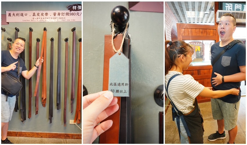 ▼這裡也有量身訂做的真皮皮帶,大家都可以選好自己喜愛的皮革顏色、粗細後,接著會由服務人員幫你量腰圍,選好後就可以開始製作啦!像大口一樣肚子偏大的朋友也不用擔心,這裡還有60腰以上的選擇,真的很大心~難怪也有不少外國朋友喜歡來這裡挑選客製化皮帶!