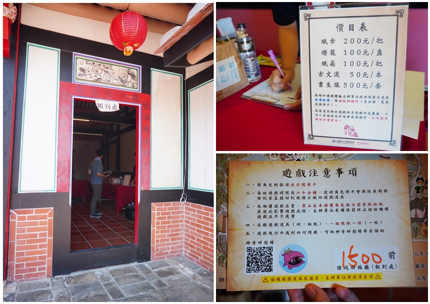 ▼終於接近遊戲時間啦!我們照規定提早10分鐘來到黃舉人宅的報到處報到,簽完名之後,就會拿到遊戲注意事項、闖關卡、地圖與服裝道具等,接下來就可以開始換裝啦!