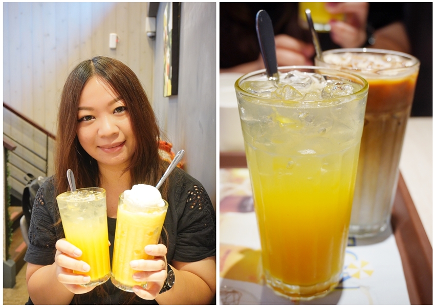 ▼中途還躲進伯朗咖啡館來杯涼的,我們點了冰拿鐵、熱帶水果冰沙、熱帶水果氣泡水一起享用,邊吹冷氣邊喝涼的真是痛快啊!