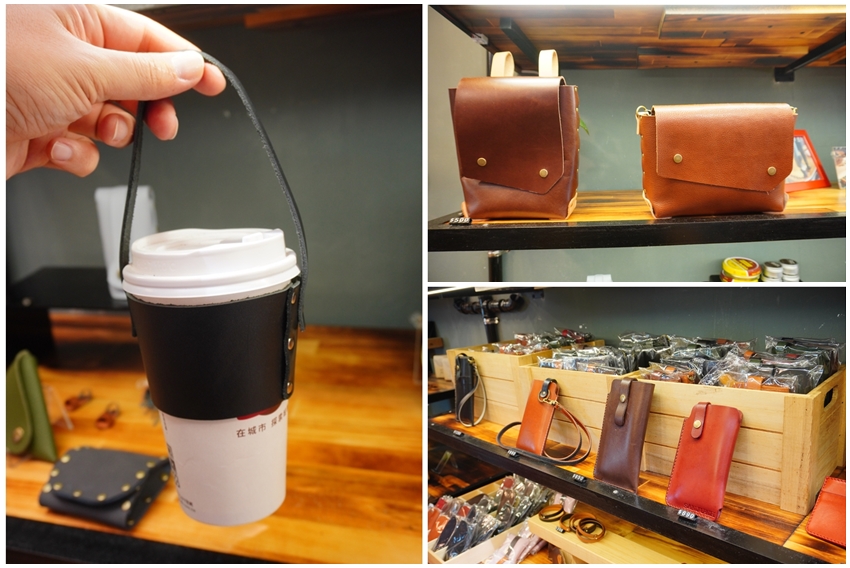 ▼等待的時間就是逛街時間,沒想到皮革可以做超多東西,像是手搖飲料的杯帶、包包、手機袋、寵物項圈、鑰匙圈、吊飾等通通應有盡有,簡約好看又耐用!