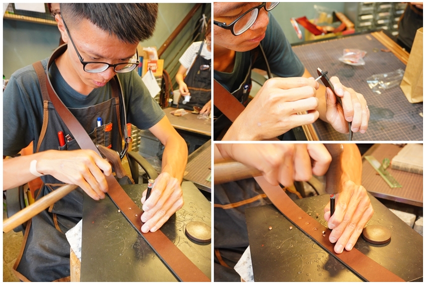 ▼接著就是皮帶打洞,大口還特別請他多打幾個洞,這樣以後如果不小心吃太飽還有扣達可以用……