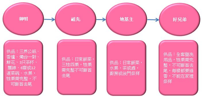 ◆中元普渡拜拜流程、中元普渡供品準備注意事項: