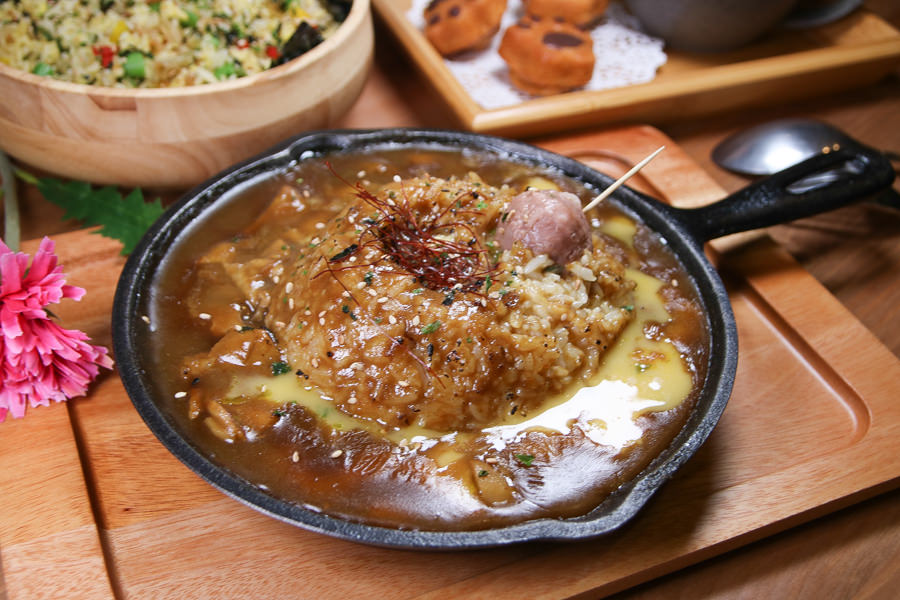帶有創意外觀的咖哩飯,滿滿的咖哩熔漿