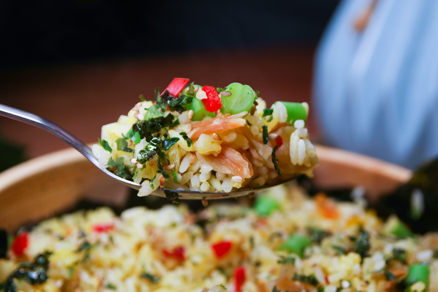 很爽口絕對不油膩的彩蔬黃金炒飯 ,無鹽、無油料理製作的彩蔬黃金炒飯