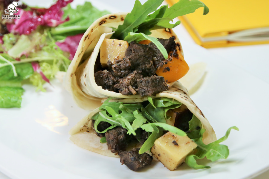 極選咖啡炒牛肉與手撖起司烙餅捲
