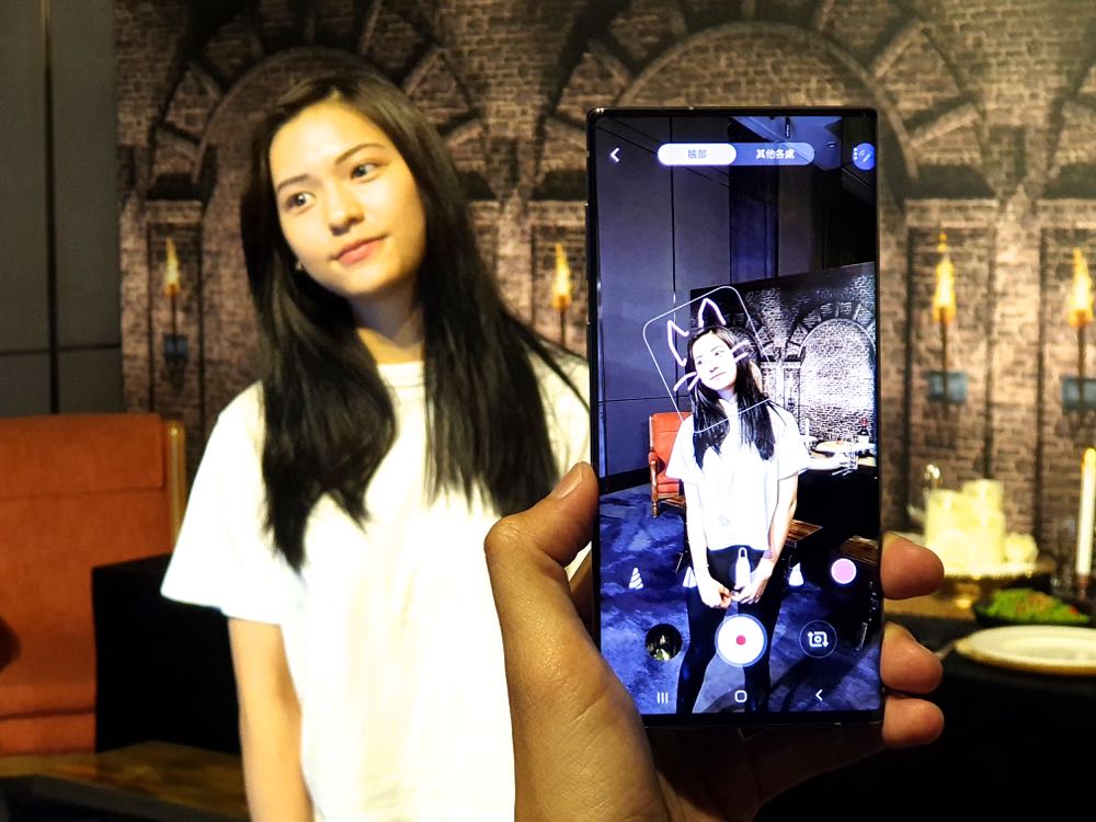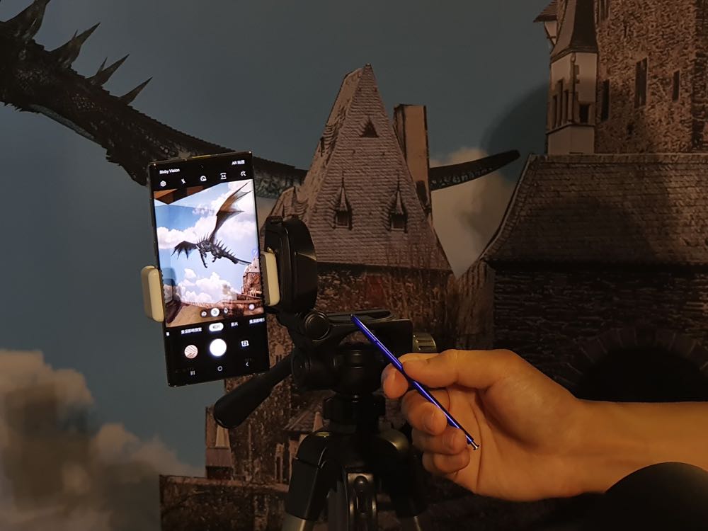 。Galaxy Note 10 系列可以支援 Live Focus Video 景深特效攝影,用戶可以隨手拍出超專業的淺景深影片,並使用柔焦、雜訊、抽色、散景四種特效。Galaxy Note 10+ 還因為搭載 VGA 景深相機來掃描物體後轉換成 3D 效果圖。