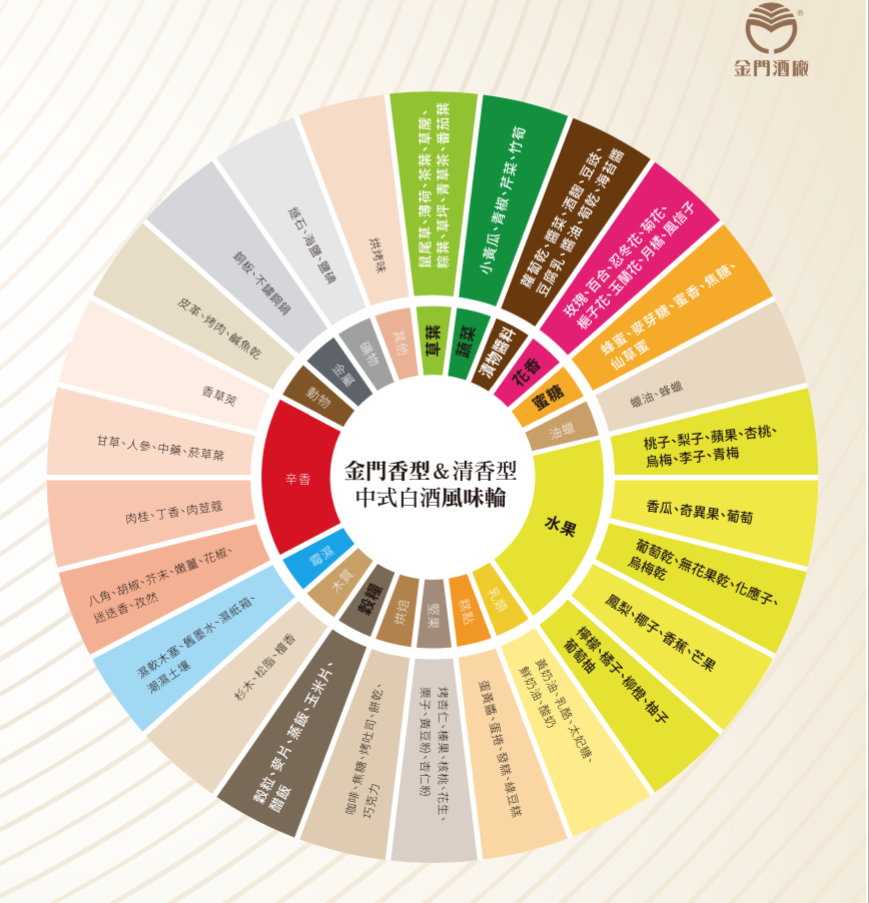 品酒是一種用五官感受的體驗,在品酒時,你可能表達不出你感受到的風味是什麼?便可對照清香型 中式白酒 風味輪來區分風味,如芒果乾與葡萄乾就是屬於風味輪中水果的一部份。