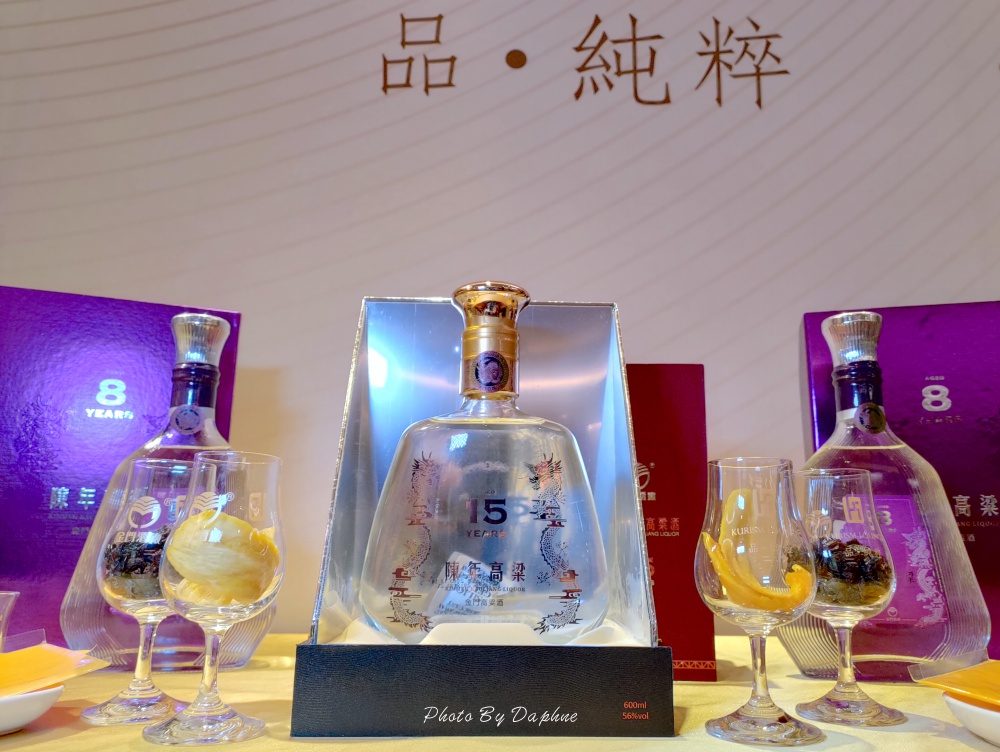 這天品飲的是2018年份白金龍58度金門高粱酒、2015年份白金龍(千日醇)58度金門高粱酒、跟現場展示的56度(酒精濃度) 8年陳年金門高粱酒、稍晚上來的56度(酒精濃度)15年陳年金門高粱酒。