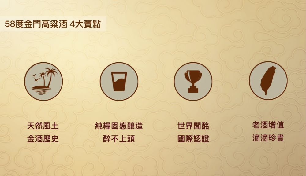 飲用金門高粱樂趣高、門檻低,樂趣在於,你一次可以買多瓶,逐年喝,逐年感受酒味與酒香的變化。金門酒廠雖然品牌歷史悠久,但是思維創新,從異業結盟、樂於將知識傳導給消費者,深化互動,並將商品文創化都看得出。這些都是金門酒廠在歷史沉積出的文化內涵以外,能越走越遠,歷久不衰的原因。