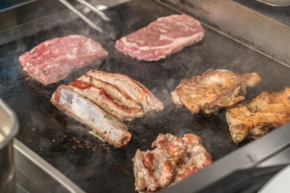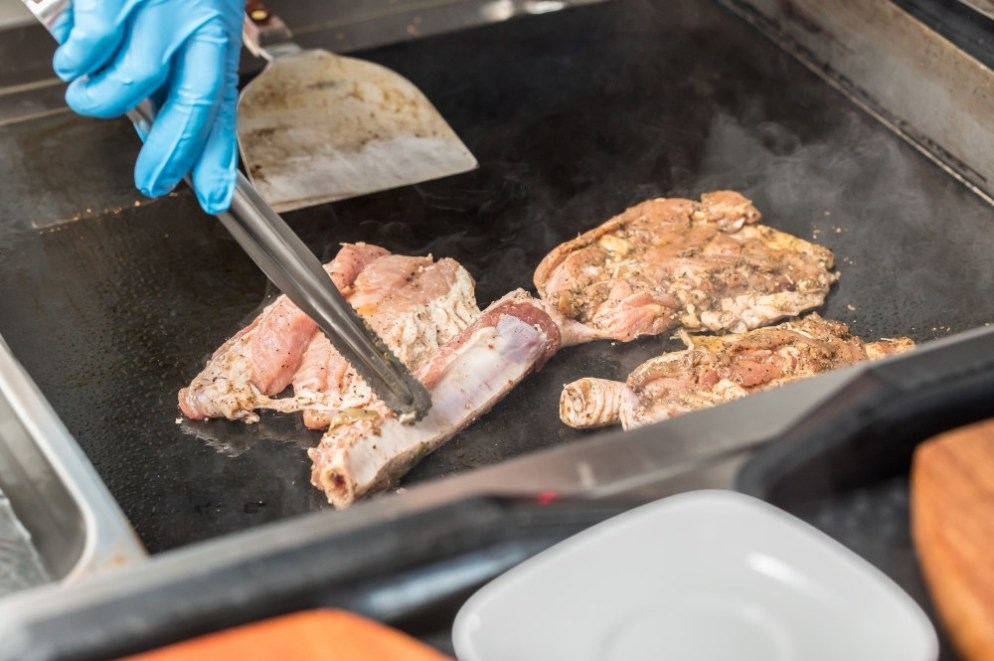 接下來,韋恩也邀請熊到廚房裡感受一下由棧團隊主理的排餐煎烤過程。