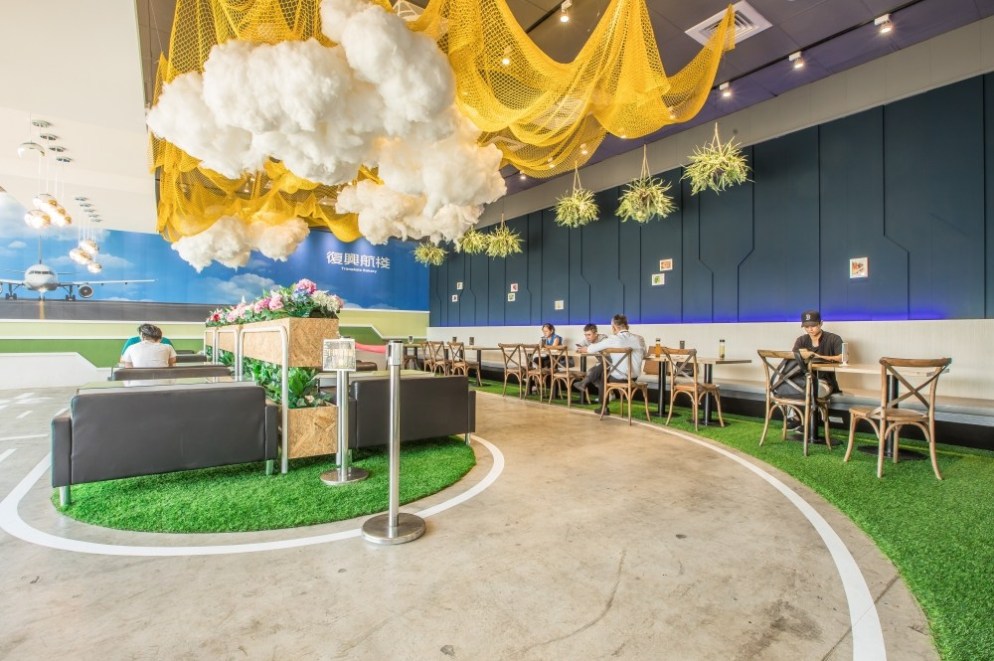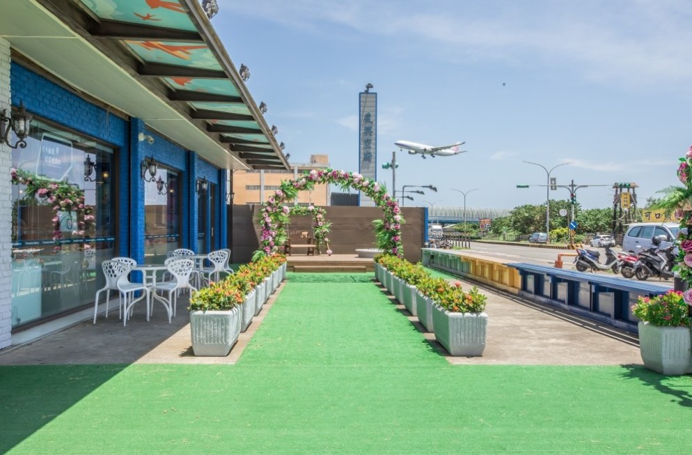 包括這部分的露台,也都是要讓大家無論白天跟晚上都能有更舒適的環境用餐跟看飛機。