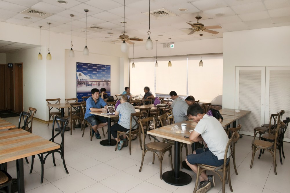 大型的落地玻璃不只讓採光絕佳,而且在這裡又能看到飛機降落,排餐搭配絕美賞機地點,而且還有冷氣不必曬太陽,只能說是完美至極啊!