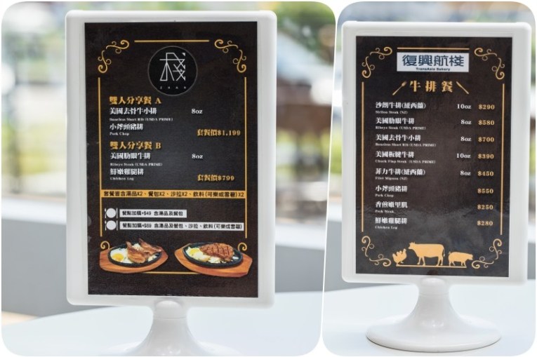 熊這次造訪位於大園的復興空廚復興航棧幸福烘焙屋,除了實地感受這個絕佳賞機秘境,兼具休息站與餐廳及烘焙坊與伴手禮中心的舒適寬敞空間,不管是想在搭機前好好吃頓飯,或是想要買點東西帶上機或是出國當禮物也很不錯哩!而現在由棧團隊推出的兩種雙人分享排餐,無論是份量或是美味程度都讓人印象深刻。