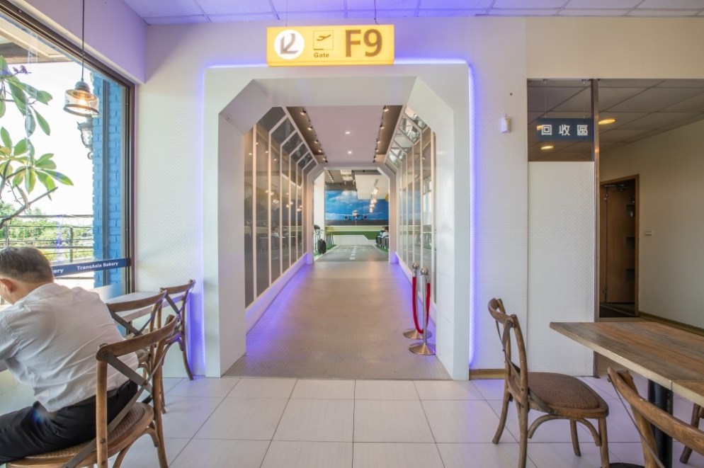 再來這個區域,就是全新打造出來的空間,大家有沒有發現它就像是個登機門,象徵跨越這裡就像是登機而到了另一個國度,也讓人感受到復興航棧幸福烘焙屋的用心。