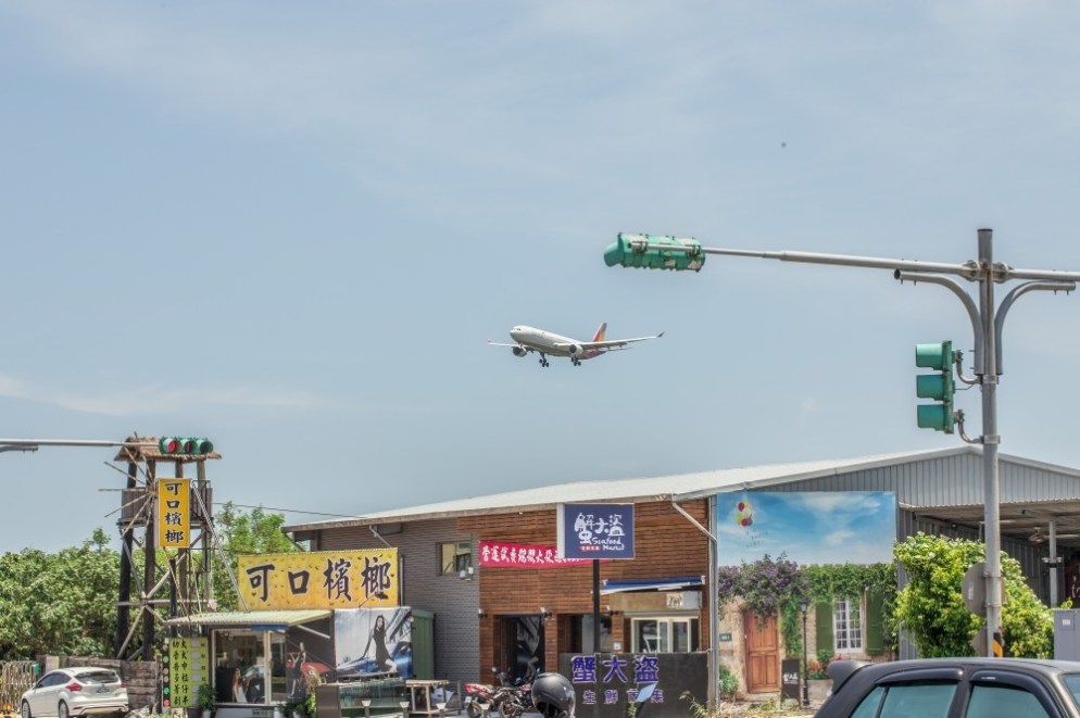 剛剛熊也跟大家提到,復興航棧幸福烘焙屋是一個超棒的賞機秘境,以上兩張圖就是最佳的證明,熊是用100mm左右的焦段拍攝,說真的飛機非常的大頗好拍,再加上因為是降落狀態,所以速度也比較好掌握,即使你沒帶相機用手機也可以拍出不錯的效果哩!