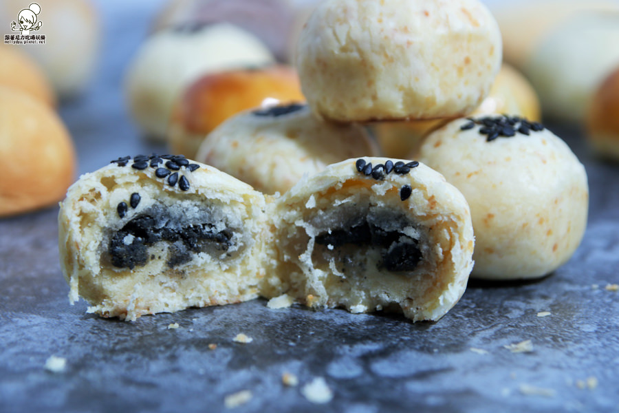 微微溼潤度讓整體不會覺得吃起來乾乾的,搭配軟Q麻糬,小巧月餅設計、一口吃嘟嘟好