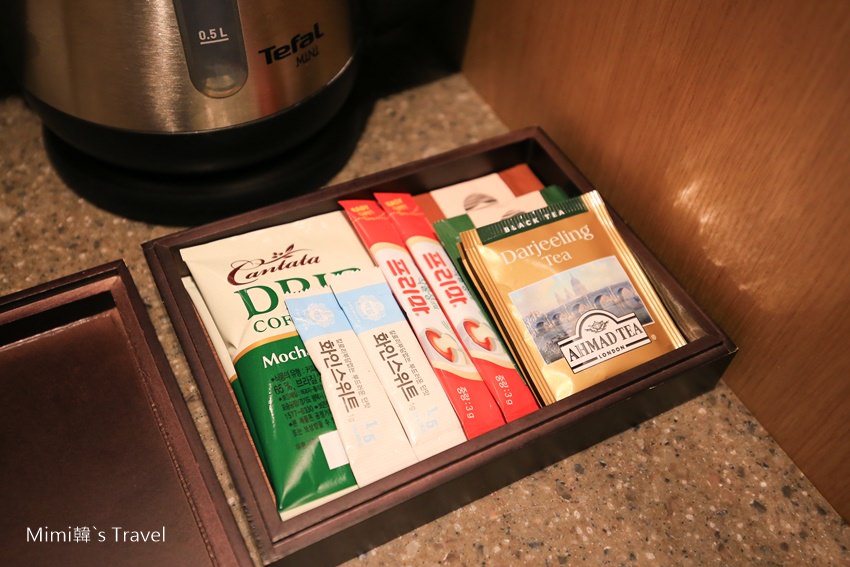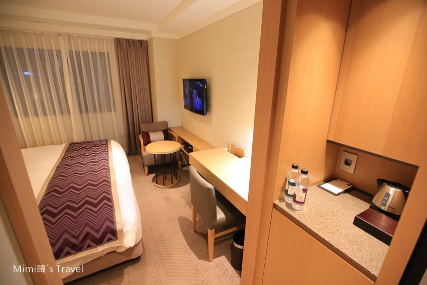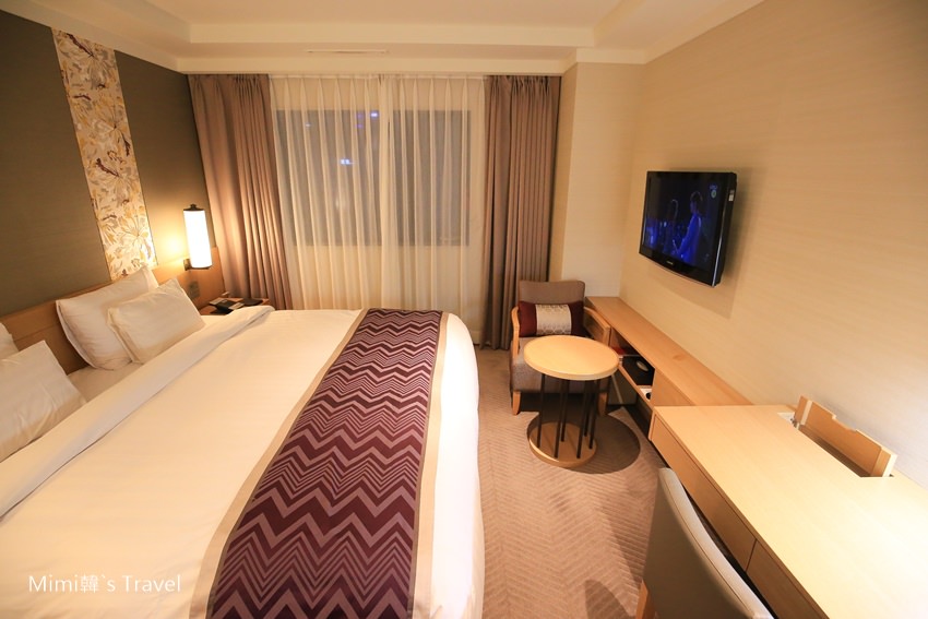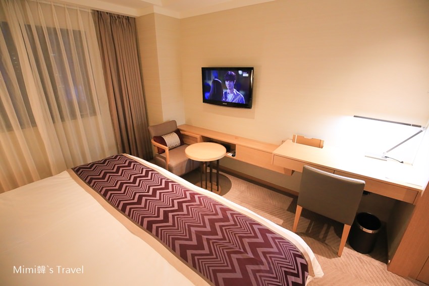 我們預約的是首爾皇家酒店最基本的雙人房,房間質感很不賴,放了一張King Size的雙人床,所以整體房間走道的部分感覺比較小,要把茶几和桌子移開,才能在地板完全打開29吋的行李箱。