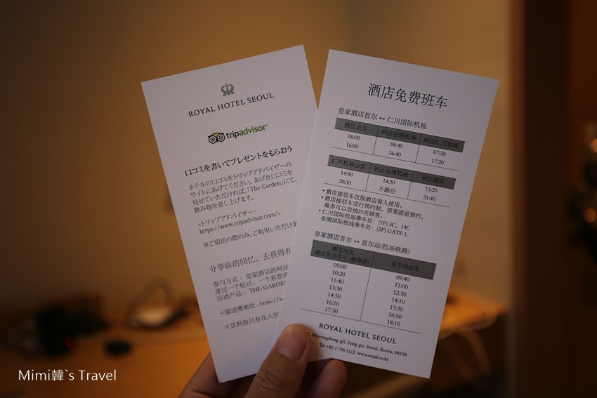 另外,飯店有提供免費接駁到仁川機場的巴士,不過班次不多,一天兩班的樣子,有需要的朋友可以利用。