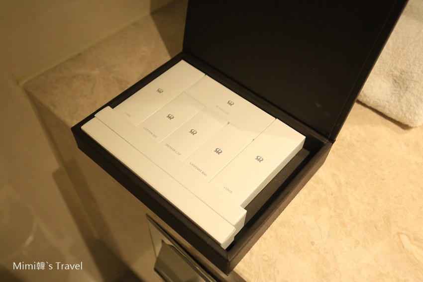 洗手台上有牙刷牙膏、浴帽、棉花棒、洗髮精、沐浴乳等相關盥洗用備品都有準備